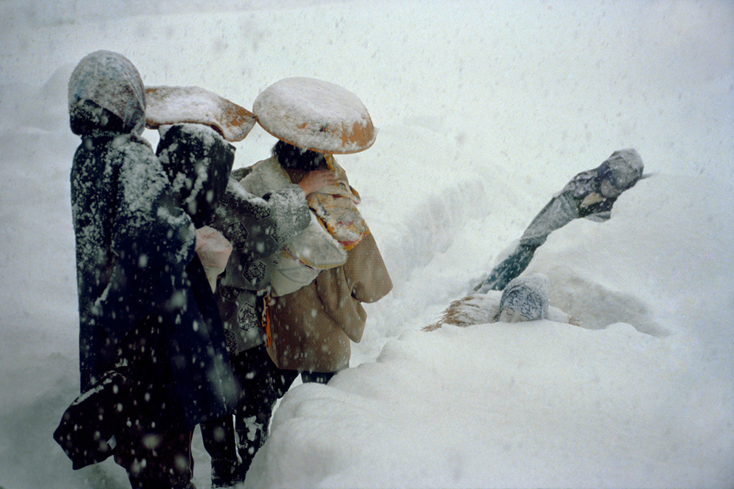 «Пилигрим» собрал визуальную мозаику из фильмов, в которых снег то превращается в метель, то оседает порошей, то закручивает пургой, то опадает редкими снежинками. Ниже – никаких текстов, только изображения.